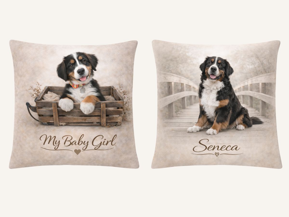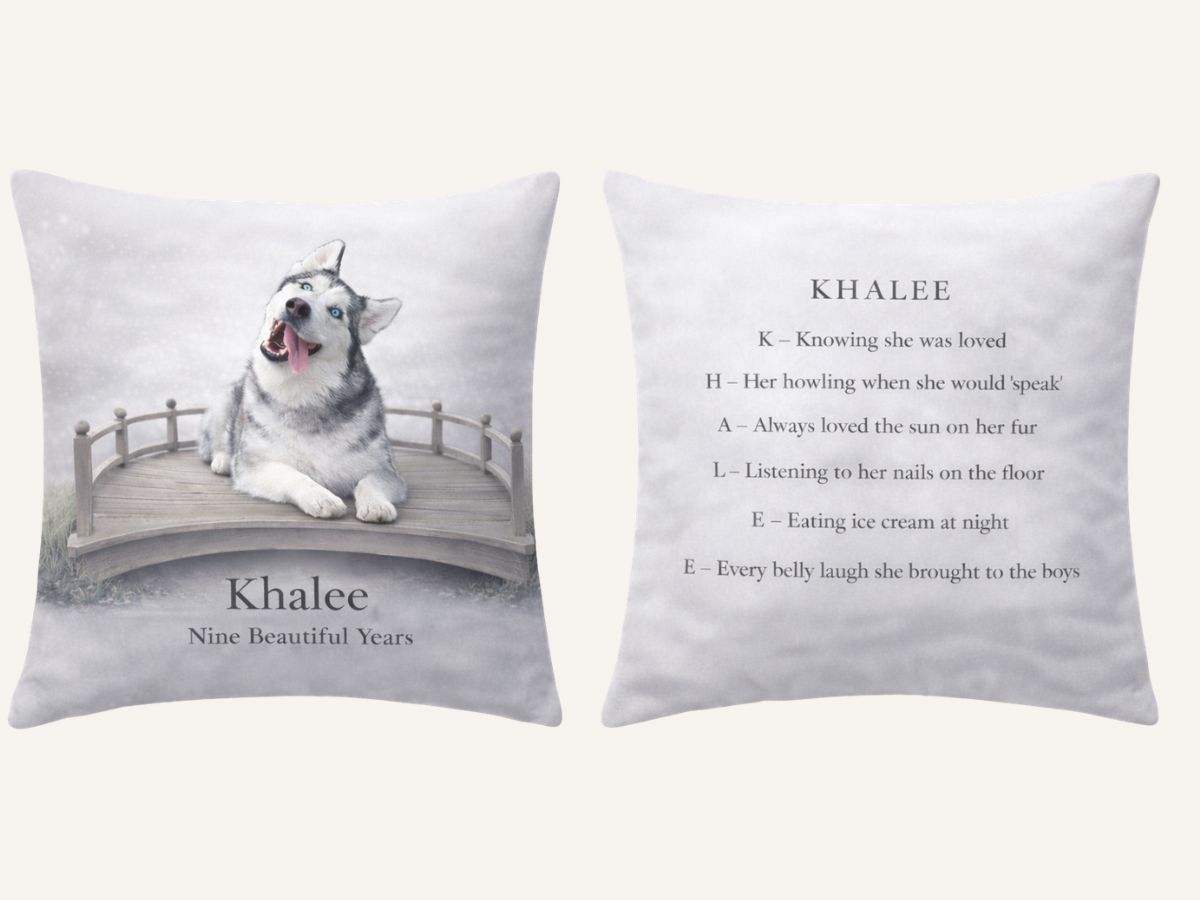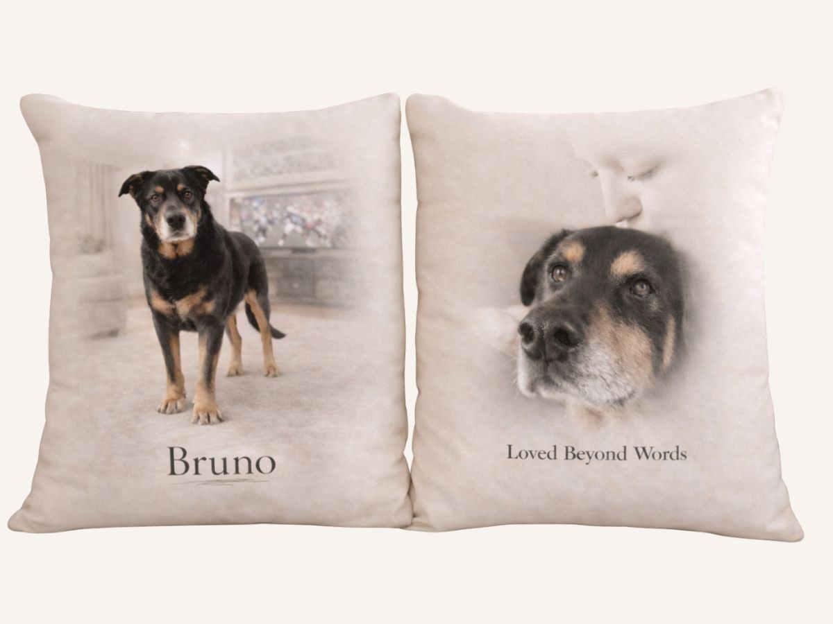 Each pillow is thoughtfully designed to honor a beloved pet, or special moment in time.